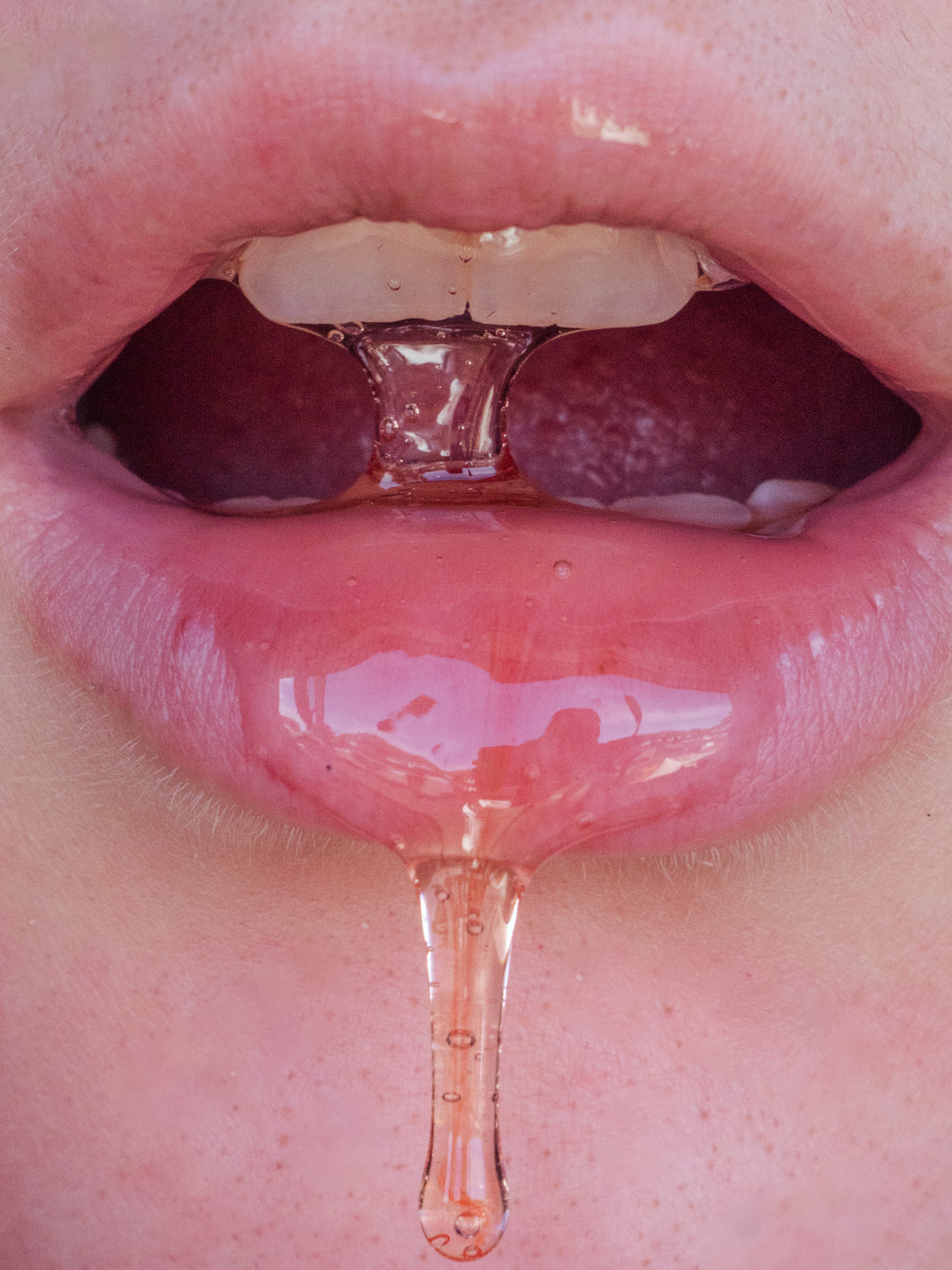 for this project williams looks at her personal relationship with feminism and the paranoia that she isn’t a good enough feminist. the project looks at themes of female sexuality and beauty standards, ranging from public spaces to private ones, exploring the pressures she feels from certain feminist views and those of the patriarchal society. the work has been described as ‘nauseating erotica’, it aims to make the audience uncomfortable while simultaneously reminding them of sex - to do this williams uses the mouth and close up images of fruits to depict suggestive situations. the project began to develop after williams started to explore her position with in her romantic relationship and how that complicated the way she feels about her feminism, realising that her insecurities in regard to this were deeper that her interactions with men. through this work williams has become to understand the unnecessary paranoia she feels about not being good enough and hopes that the work can help other women who have the same feelings can use this project as an opportunity to discuss them with others and realise they are not the only one that feels this way.